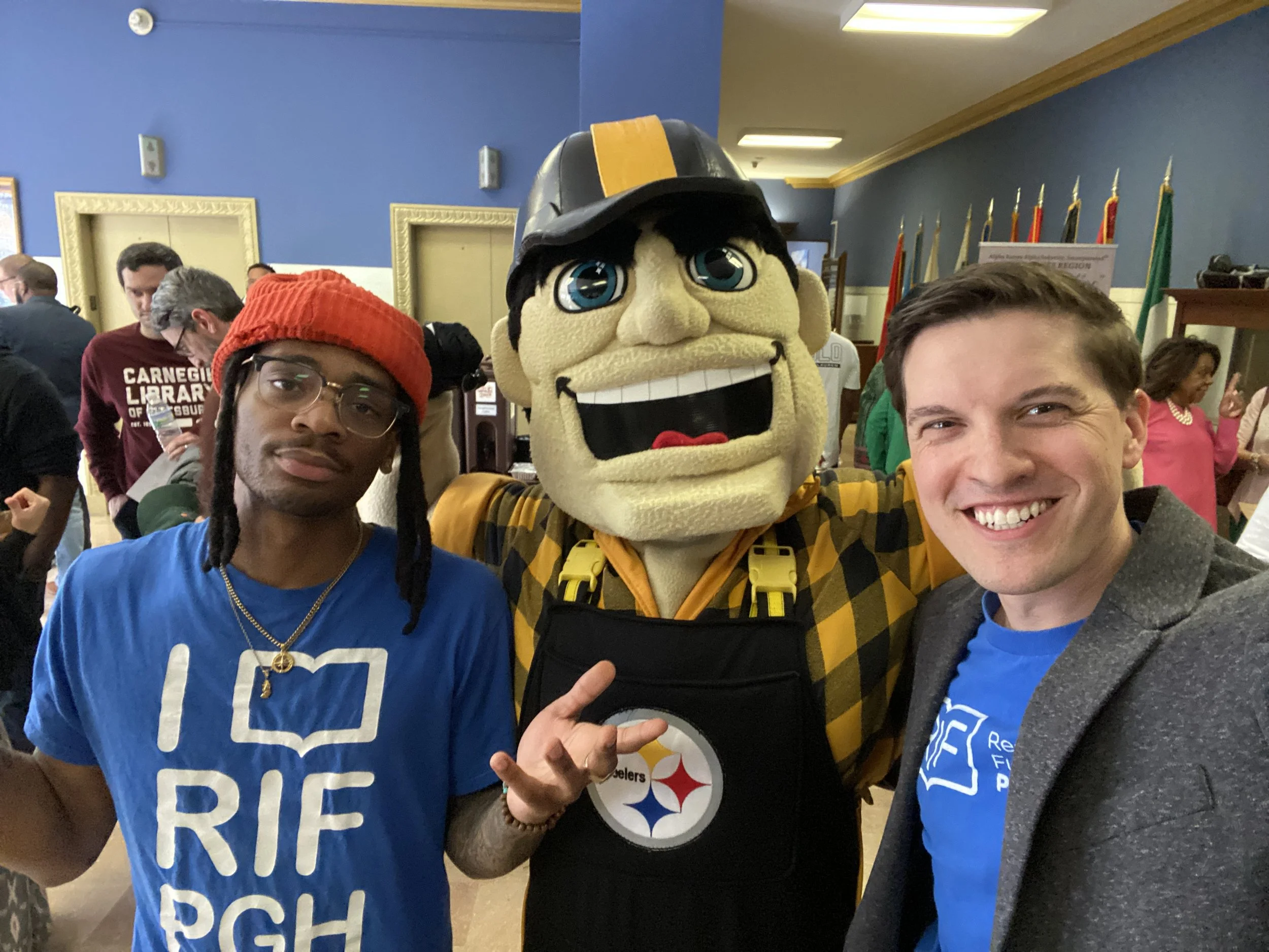 Kyle Fahsel, our Director of Mentoring, and Corey White, one of our Children’s Programming Coordinators, represented RIF Pittsburgh at City Hall last week to celebrate the 27th Anniversary of Take a Father to School Day with Pittsburgh Public Schools. Kyle and Corey, both literacy mentors at Pittsburgh Faison, spoke with a distinguished group of community members that included Mayor Ed Gainey and Pittsburgh Public School School Board President Gene Walker. During the event, Kyle addressed the Pittsburgh City Council to speak about the importance of literacy mentoring and the impact of our mentoring program RIF Everybody Wins!
